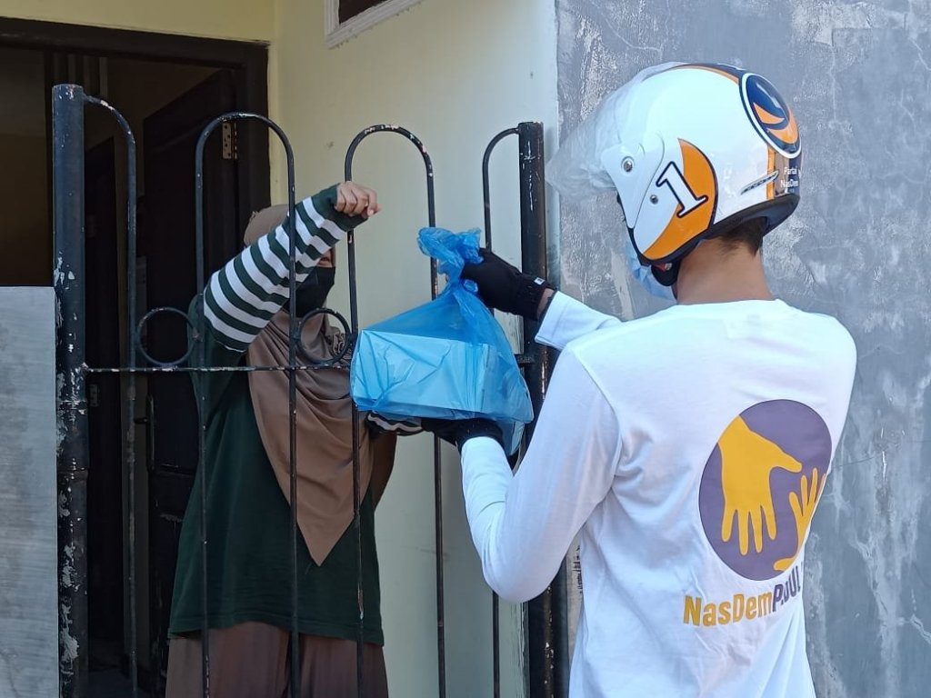Partai NasDem Kota Probolinggo kembali melakukan aksi kemanusiaan dengan berbagi makan siang kepada pasien Covid-19 yang sedang menjalankan isolasi mandiri (isoman) di rumah.