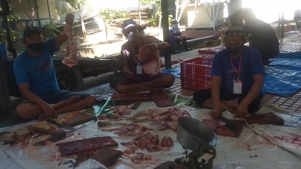 Dijelaskan H,Syaifullah,ratusan daging kurban yang beredar nantinya akan dibagikan kepada masyarakat dengan kita antar ke rumah masing masing dengan maksud biar tidak terjadi kerumunan.” jelasnya.(go/ Yul)