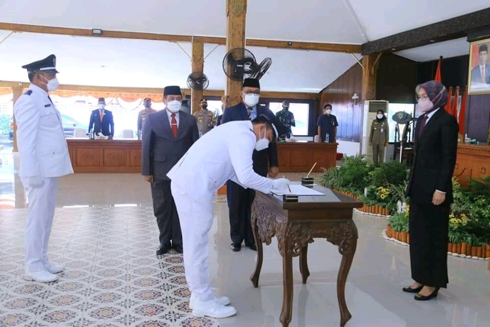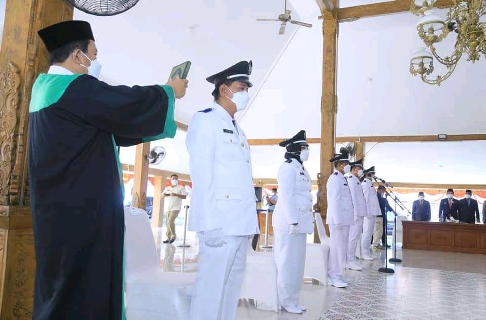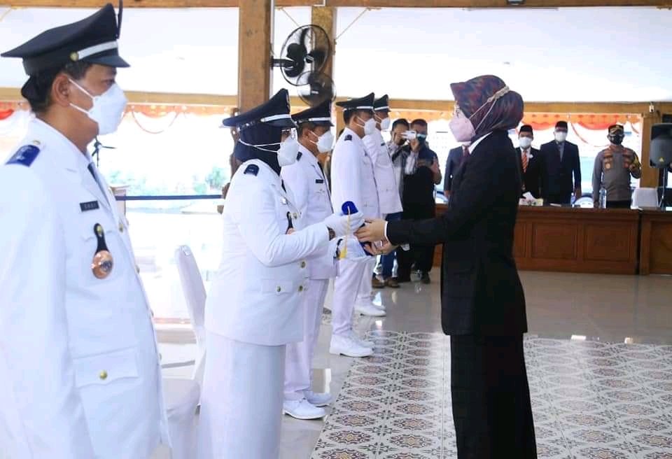 Bupati Probolinggo Hj. P. Tantriana Sari, SE secara resmi melantik dan mengambil sumpah/janji 61 orang kepala desa (kades) terpilih dari 21 kecamatan di Kabupaten Probolinggo secara hiybrid dan virtual, Senin (9/8/2021) pagi.