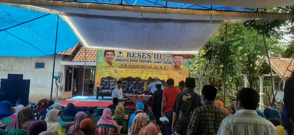 Probolinggo, Anggota DPRD Provinsi Jawa timur dari Faksi Partai Golkar, H. M Hasan Irsyad adakan Reses III di Desa Maron Kidul Blok Tolop disambut meriah oleh masyarakat. Pasalnya, Masyarakat banyak yang mengeluh meminta perbaikan infrastruktur jalan desa dan penampungan air dalam program kerja selanjutnya.