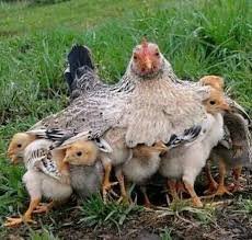 Namun bukan ini yang ingin saya bagikan. Ketika belajar beternak ayam ini saya memperhatikan kelakuan ayam-ayam tersebut. Pengamatan saya adalah pada gerombolan ayam yang terdiri dari induk dan beberapa anak ayam. Seperti yang kita ketahui bahwa induk ayam sangat bertanggung jawab dalam membesarkan anak-anaknya. Pernah suatu saat saya iseng mengganggu anaknya, apa yang terjadi kemudian? Sang induk ayam berusaha mematuki saya sambil berceloteh khas ayam (mungkin dia bilang jangan ganggu kami!!! Sana pergi!!)