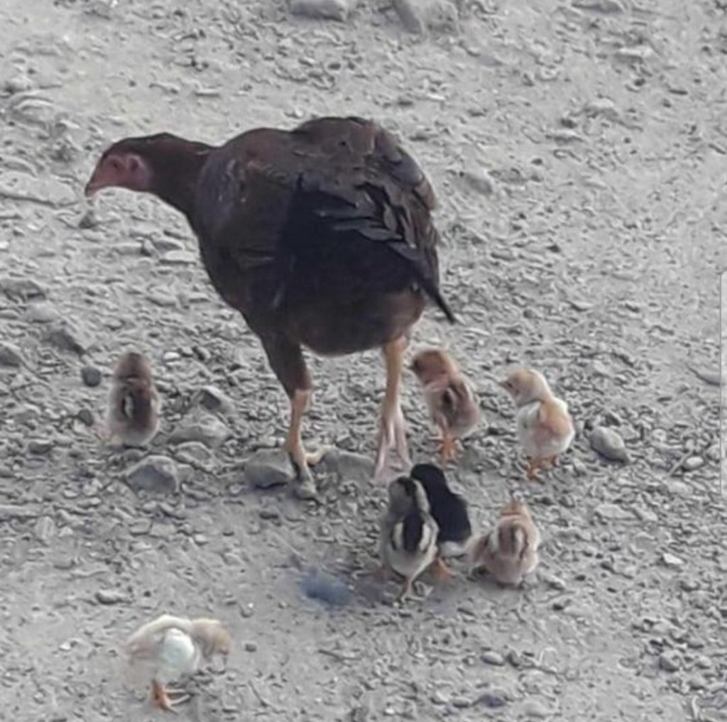 Anak-anak ayam ini selalu mengikuti sang induk kemanapun ia pergi. Ketika si induk mematuk makanan di tanah, mereka pun mematuk di tempat dimana si ibu mematuk. Si ibu pergi ke kanan, anak-anaknya juga ikut ke kanan, begitu juga dengan sebaliknya, walaupun kadang ada yang tertinggal mengikutinya. Sesekali induk ayam melihat ke kanan dan ke kiri seperti pengawas yang sedang mengawasi anak-anak ujian. Dia berusaha melindungi keselamatan para anak-anaknya. Tindakan ini tidak lain untuk mengawasi kondisi disekitarnya, takut-takut ada binatang buas yang ingin memangsa mereka. Pokoknya naluri keibuannya jangan ditanyakan. Dia siap memberikan yang terbaik termasuk nyawanya.