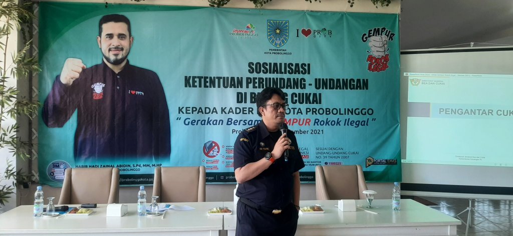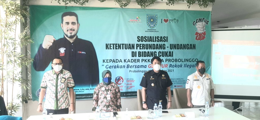Pemkot Probolinggo melalui Diskominfo,Kepada Kader PKK Kota Probolinggo “Gerakan Bersama Gempur Rokok Ilegal”melangsungkan Sosialisasi Peraturan Perundang-undangan di Bidang Cukai yang diselenggarakan di Garden City Resto,yang ada di jalan Raya Bromo,Kelurahan Triwung lor,Kecamatan Kademangan Kota Probolinggo,sekitar pukul 09.00 wib.Kamis (18/11/21).
