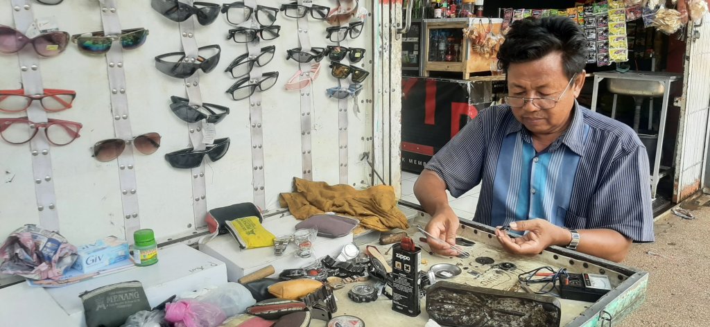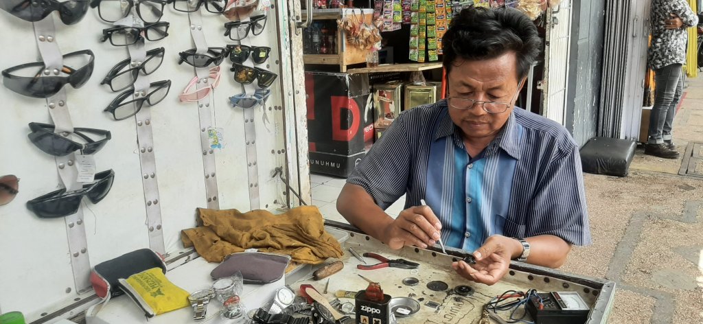 Muhammad Tamin (51) tahun salah satu tukang servis jam tangan yang mempunyai tiga anak ini,beliau kerja mulai tahun 1988 sampai sekarang tahun 2021.