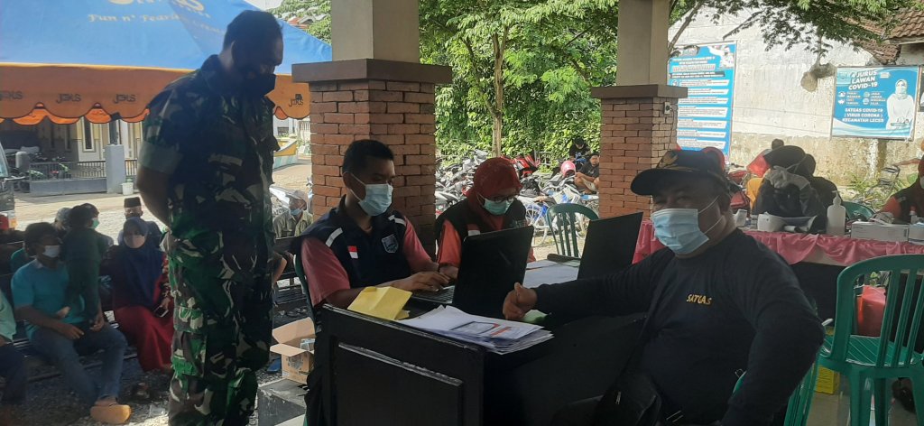 Dalam kesempatan kali ini Babinsa Koramil 0820/03 Serka Sarmuji melakukan pendampingan dan memantau kegiatan Vaksinasi Bertempat Di Kantor Desa Jorongan Kecamatan Leces Kabupaten Probolinggo Kamis (23/12/21).