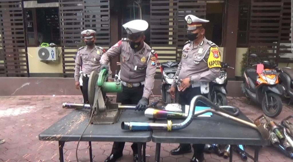 Terkait dengan sepeda motor, penggunaan sparepart yang tidak sesuai dengan spektek yang kita atensi bersama adalah knalpot drone ( knalpot racing). Ditahun 2021 kita lakukan penindakan 91 kasus. Sementara kejadian kecelakaan lalu lintas ada 311 kasus yang sudah selesai 77 kasus sisa nya masih proses.