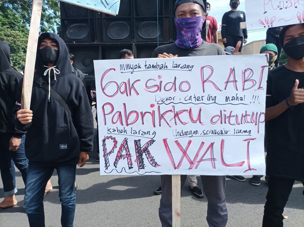 Puluhan karyawan pabrik cv Grapari datangi kantor Walikota,kedatangan mereka tak lain menuntut keadilan terkait ijin pembangunan pabrik yang usai terbakar, Rabu (9/02/22).