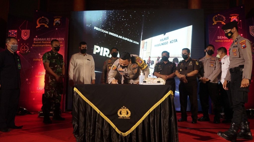 Bertempat di Aula Putih mapolres, kegiatan ini dihadiri langsung oleh Wakapolda Jatim Brigjen Pol. Drs. Slamet Hadi Supraptoyo, S.H, MH., Walikota Probolinggo Habib Hadi Zainal Abidin serta para Forkopimda Kota dan Kabupaten Probolinggo.
