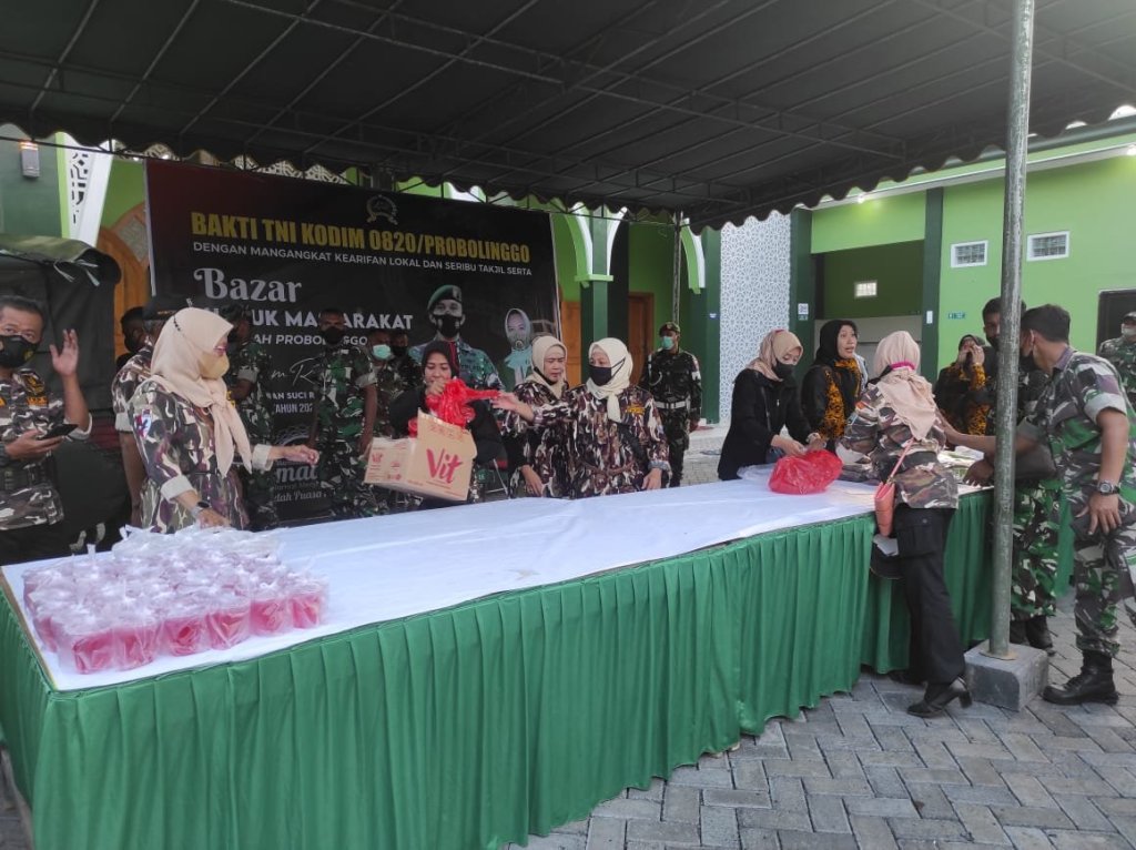 Kodim 0820/Probolinggo menggelar Bazar Takjil Ramadhan di halaman Masjid Kodim 0820/Probolinggo. Jumat (8/4/22).